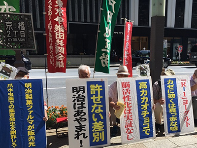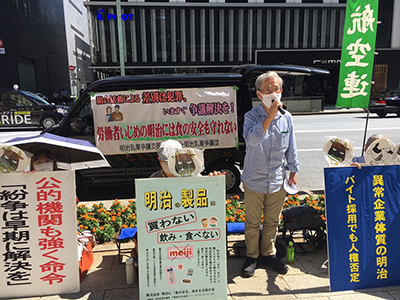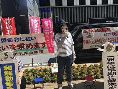 ご通行中の皆さん、私たちは明治乳業争議を支援しています。