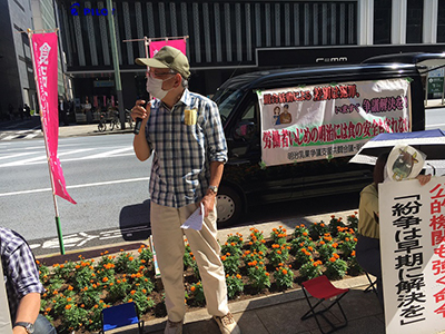 東お礼と決意 明治乳業争議団・松下副団長