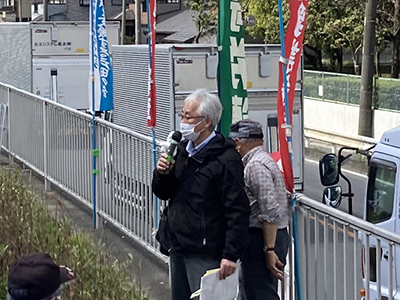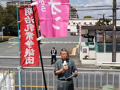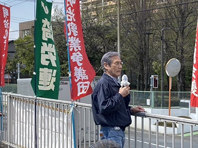 主催者を代表して横田文夫議長から、今年2月に開催された明乳争議支援共闘会議に幹事として参加したことを報告し、都労委調査の現状に触れつつ戸田工場で働き差別を受けてきた4名の闘いを支援し、解決するまで今日お集まりの皆さんと共にガンガルことを呼びかけられました。